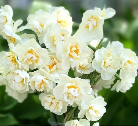 Narcis, ktorý kvitne koncom jari krémovo bielymi dvojitými kvetmi s citrónovožltými srdiečkami. Na jednej stonke vyrastú 3 alebo 4 sladko voňavé kvety.