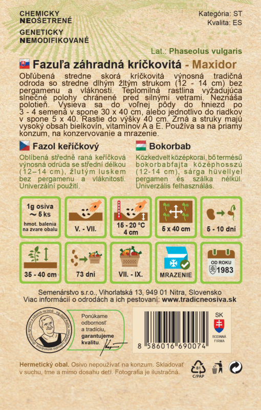 Fazuľa kríčková žltostruká MAXIDOR 20 g SEMENÁRSTVO
