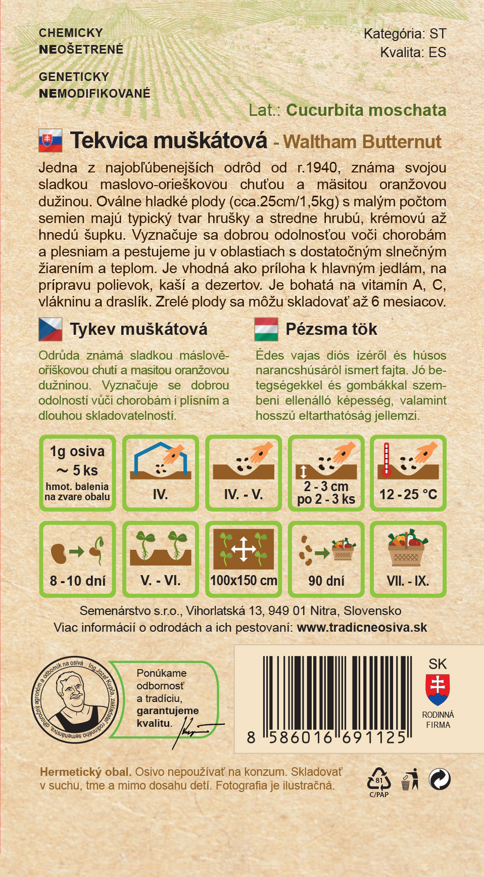 Tekvica muškátová WALTHAM BUTTERNUT 3 g SEMENÁRSTVO