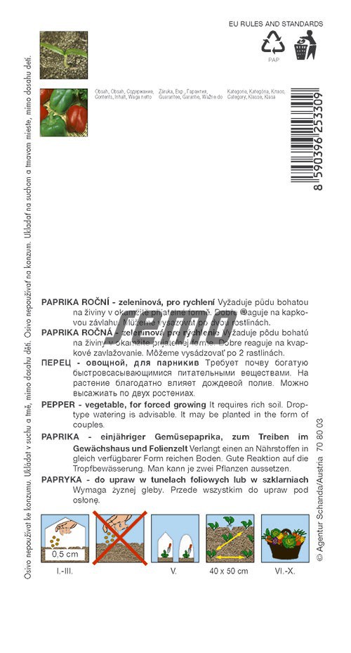 Paprika sladká RUBIKA F1 15 sem. SEMO, na rýchlenie