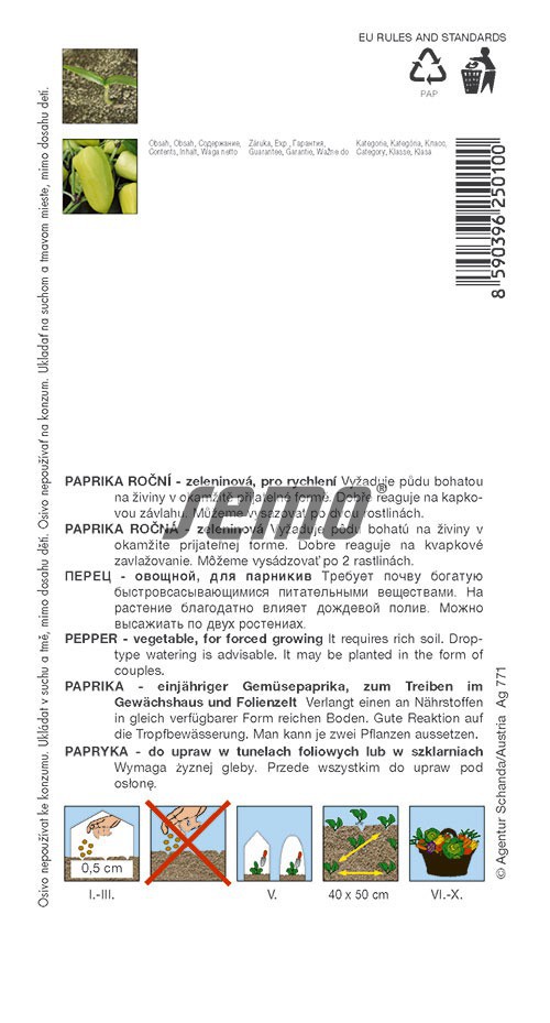 Klasická obľúbená odroda vhodná pre rýchlenie i poľné pestovanie. Plody sú dlhé, rovné alebo prehnuté, tenkostenné, žltozelené v technickej zrelosti, červené v botanickej. Sú aromatické a mierne pálivé, šťavnaté. Je určená pre zber v technickej zrelosti a používaná predovšetkým pre priamy konzum. Citlivo reaguje na zhoršené podmienky, hlavne na pokles teplôt. Vegetačná doba do prvého zberu v technickej zrelosti je 129 dní. Zo 100 m2 sa dá obrať 350 – 370 kg plodov v technickej zrelosti.